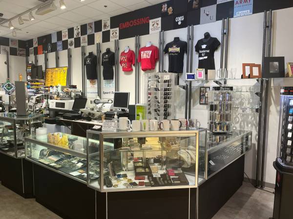 We do custom T-shirts , embroidery, engravings and retail