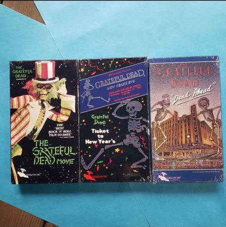 All 3 VHS Tapes are still wrapped in their own individual plastic wrap(the way they came). VHS tapes have never been watched or unwrapped. All 3 VHS tapes fit perfectly and come in a cardboard/paper sleeve. This sleeve isn't in the best of shape. Sleeve is in Fair/Acceptable shape but holds new/unwatched tapes just fine, just not pretty. Sleeve shows wear and tear on corners and edges along with all sides including top and bottom. The inside has staining as well. BUT still holds tapes perfectly.