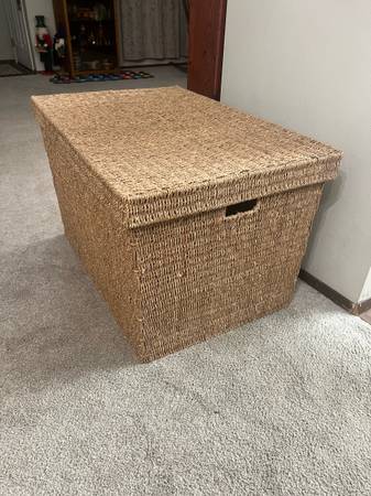 33 x 21.5 x 20 extra large wicker rattan storage box with lid Separate lid Very sturdy 2 slot handles K