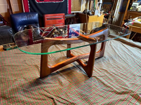 Freshly refinished Adrian Pearsall biomorphic ribbon table. I’d keep it if I had the space and if I wasn’t scared glass topped tables.