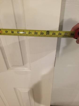Solid Core Right Hand Inswing Door with Handle and Hinges Painted in White Oil Base Paint Size: 80.5" tall 25 5/8" wide Ready for Pick up Today
