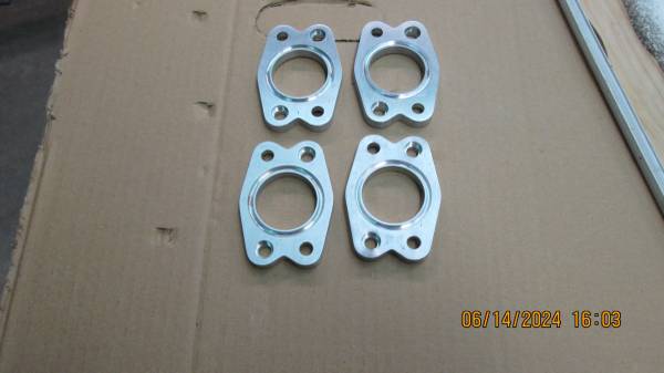I have for sale custom made adapter/spacers for use with the side draft DCOE Weber carburetors. These are made by a friend of mine who also fabricates the lowering brackets for the Fiat 600 and Fiat 850 front suspension. These spacers are machined from aluminum and will adapt the rubber anti-vibration mount to the intake manifold. This set up helps cancel vibration caused by airflow through the carburetor. The concept was used on the early Alpha Romeo 1300 and 1600 manifolds, but is necessary for any application using the Weber DCOE carburetor. These adapter plates should also work for any side draft carburetor using the same bolt pattern as the Weber. Ie. Dellorto, Mikuni, Solex, etc.
