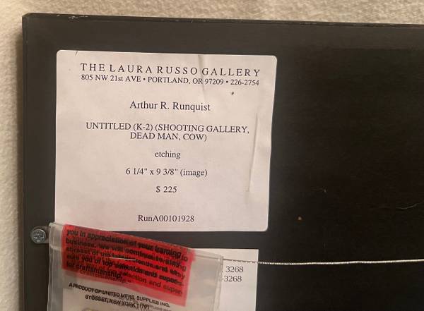 Measures about 12" by 15" including frame. Sealed in frame. Reverse label "The Laura Ruso Gallery and Art Space label. Katayama framing label. Nicely framed excellent condition.