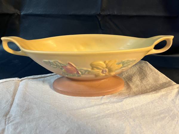 #62] Vintage Hull Ware Ceramic Pottery Stoneware Double Handled Console Bowl