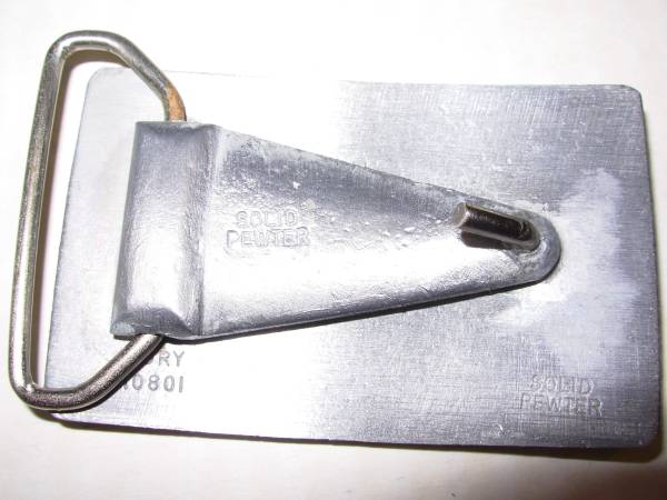 First Man on the moon landing copy of the postage stamp buckle (3" x 1 3/4"). Solid pewter, never worn, excellent condition. Cash only.