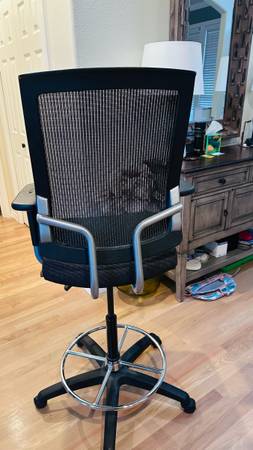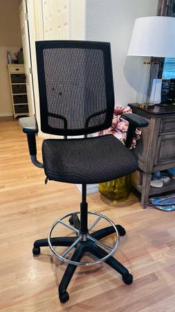 Tall office chair currently used for a sit stand desk. Left arm has a slit in the material and so the low price. These are made by sit on it furniture and retails for $650+