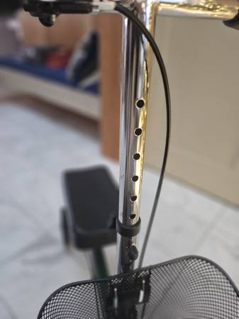 KNEE SCOOTER Replaces crutches. High Quality, NEW, Used for 6 weeks, Comfortable but Firm knee support (Right or Left), assembled, foldable for easy transport, handles heights from 5-3"- 6'-5" & supports up to 300lbs, Drum brake w/Hold Button, LARGE METAL Basket, Fishers Landing area.