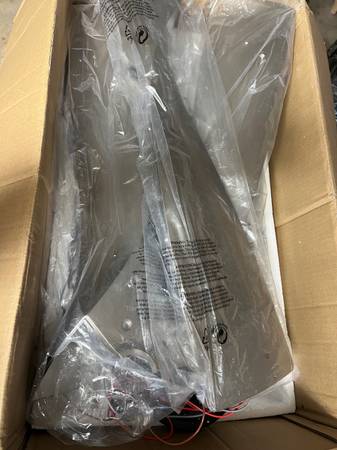 Fan is plastic but looks metal. Super pretty! Brand new.