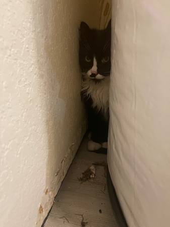 Kitty is scared and uber sweet. I took her/him to vet and they are not chipped. I have her in the bathroom , and she eats cat food out of my hand. I think someone is missing their baby for Christmas.