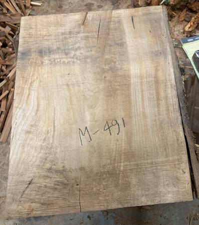 Many of these smaller-sized maple slabs were sawn from the butt cut of the curly maple tree. They may feature some birds eye or tiger maple. Because of the grain structure, they don't tend to check or split as much as other slabs. They are 2 in. thick. The moisture content is 10-13%. Priced at $6/bd-ft.