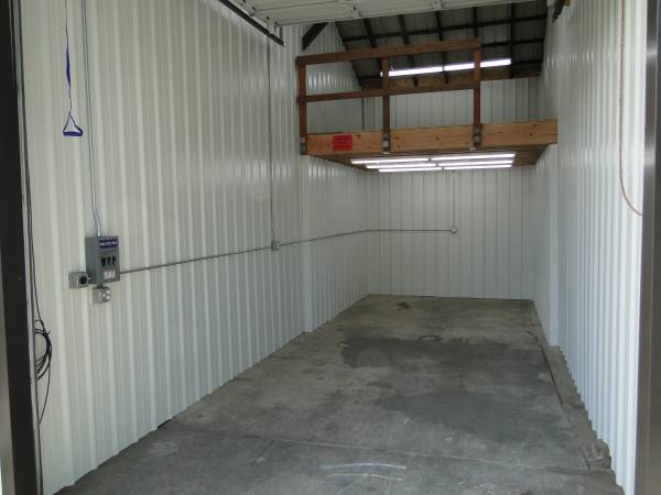 Rent includes FREE Electricity, BIG SCREEN TVs, 150 channels HD cable, welder plugs, compressed air outlets, extensive overhead lighting. Many units offer overhead lofts for extra storage.