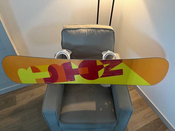 Burton Hero V-Rocker 158 cm snowboard with Burton Mission bindings. In good condition with normal marks from it's use! Comes with the board bag, a helmet, and also board tool!