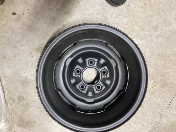 5 x 15 chevy wheels sandblasted and premiered satin black . matching originally of a 55 chevy, fit 1954 through 1962, all 4 for $375