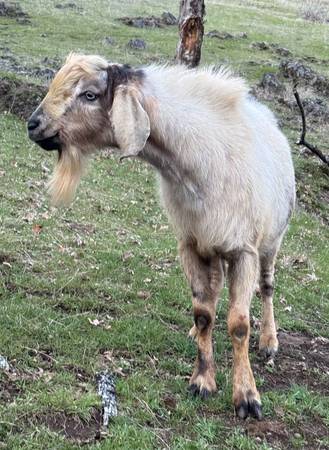 Our handsome, sweet and proven 3yo is up for sale. Ernest is a beautiful grey with black, white and brown marbling. He has done some heavy lifting and sired a bunch of beautiful kids on our dairy farm. We believe he is good for a few more rounds before his career is over. Our bucks are handled daily, leash and halter trained and a pleasure to work with. Healthy and in full rut at the moment, anxious to get at it (we will clean him up a bit before delivery), we will miss his sweet playful personality. Make sure you have companions for him.