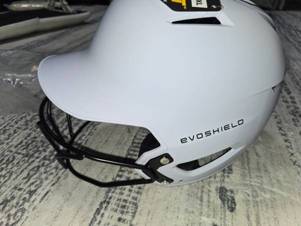 EVOSHIELD Batting Helmet w/softball mask. L/XL New Never used I work in NE Portland area and can meet for exchange..