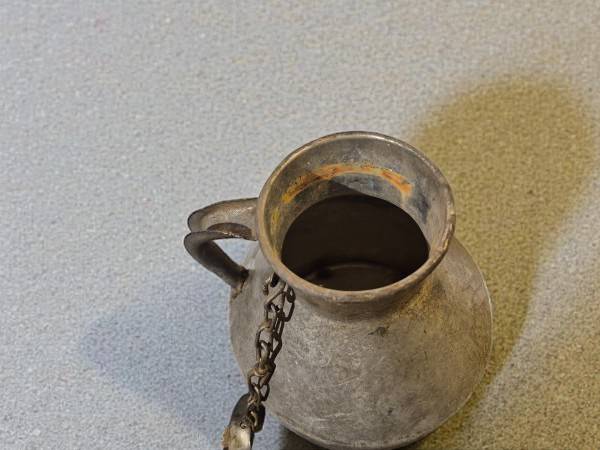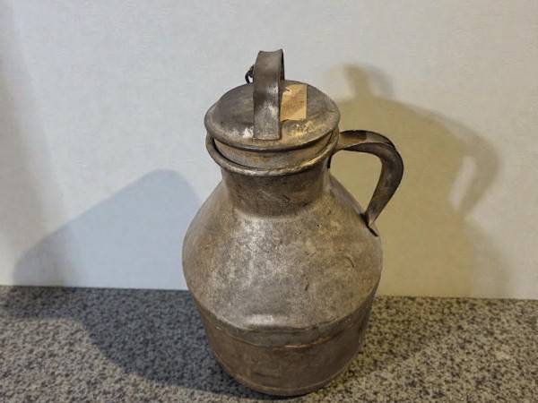 Antique milk jug with lid stands 15" tall 8.5" diameter