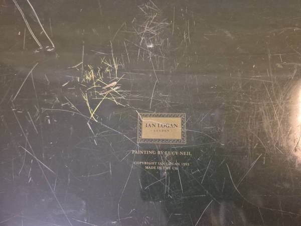 lam Logan Toleware 1993 Serving Tray Painting By Lucy Neil: Whitepapers. Pansies, Crocuses, Flower pots w/ birds nest, Blue Eggs