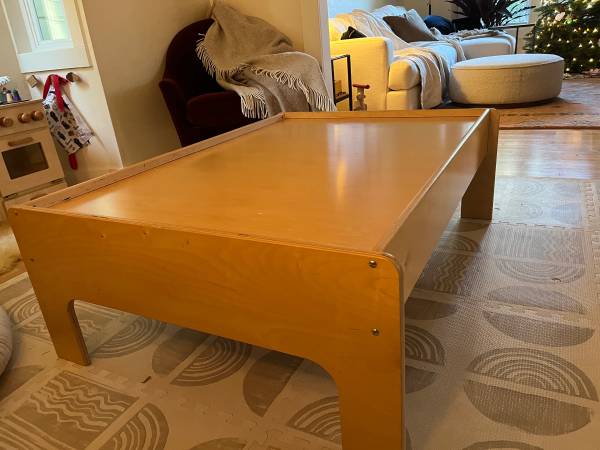 Simple, elegant, timeless activity table. Our kids love it! We are moving their play room into a different space and need to downsize 33 in wide 48 in long 16 in tall