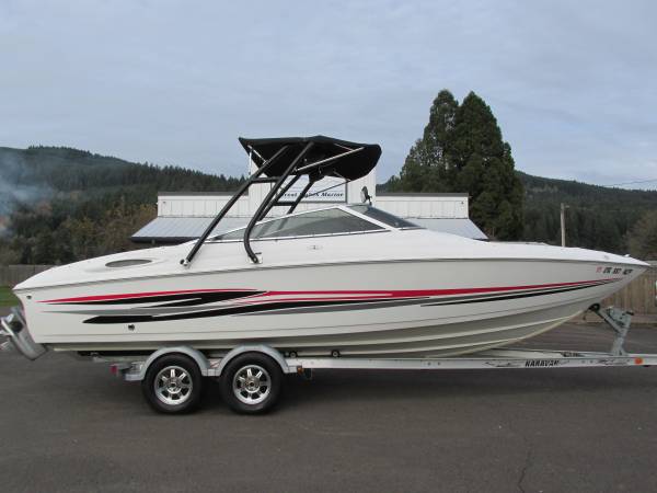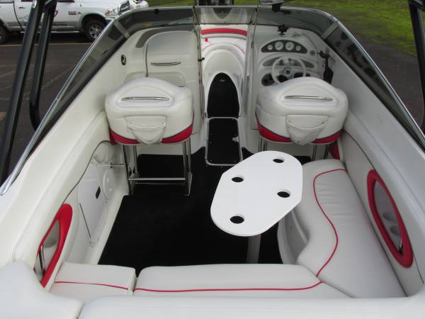 Other features include: dual batteries with switch, power engine hatch, dining table, bow filler cushion, captains choice exhaust, depth finder and more. This is a very sharp looking boat that is in overall good condition. It comes with the tandem axle trailer. Priced at $17,500. Call/text Tim at 541-913-1567. Check it out on our website www.greatwakesmarine.com