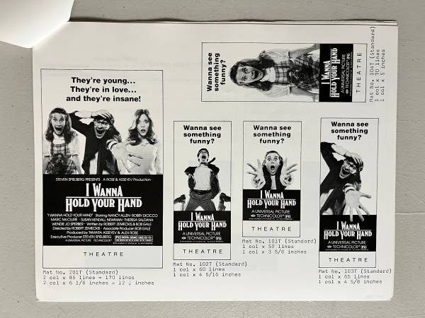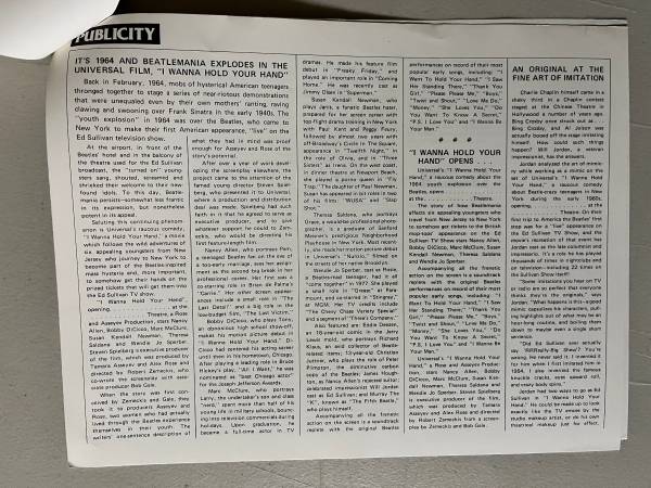An original uncut complete thirteen page pressbook for the 1978 Beatles inspired comedy I WANNA HOLD YOUR HAND from Oscar-winning director Robert Zemeckis.