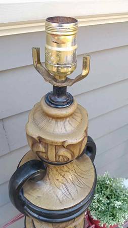 Brown and black colored 70's Table Lamp. Great condition, single switch. Takes standard bulbs, CFL, or LEDs. Lamp is 24 inches tall With 7 feet of brown cord. No shade. If you see this add the item...