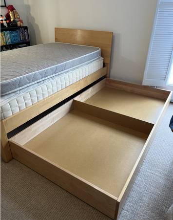 Beautiful, solid, modern bed set in excellent condition! This is a high-end bed that our son grew out of much too quickly. We can sell it as a set for $1850, or sell the Naturepedic mattress separately from the trundle bed set.
