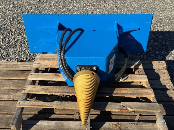 Brand New skid steer loader or tractor attachments. This is the hydraulic cone log splitter attachment that fits Bobcat, Kubota, Case, John Deere, ASV, Skid Steer, Loader, Tractors etc.. with standard attach systems.