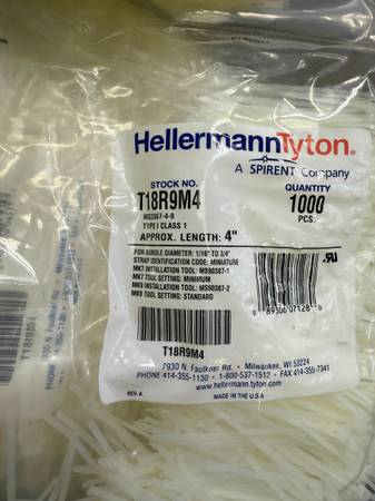$15 each 32 available Hellermann Tyton T1819M4 1000 count5 3/4" long T18R9M4 1000 count 4" long