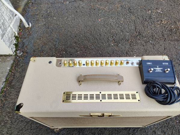 This is a great piece .... Very warm tones and clean inside and out ... It is a 50watt all tube 2x12 powered unit and ready for you to enjoy . It has its proper foot pedal , a beautiful embroidered cover with it model number stitched into it . A beautiful dust free , cream color ....