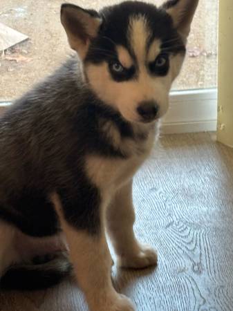 BLACK/WHITE HUSKY 4 MONTHS PODDIE TRAINED FRIENDLY LIKES KIDS