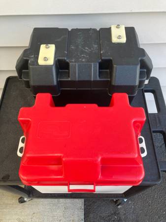 Car/Boat Battery Boxes. $15 each, both for $25. If interested call and leave a message or text me at 5 zero three - three five one - 6 1 2 three. Bob