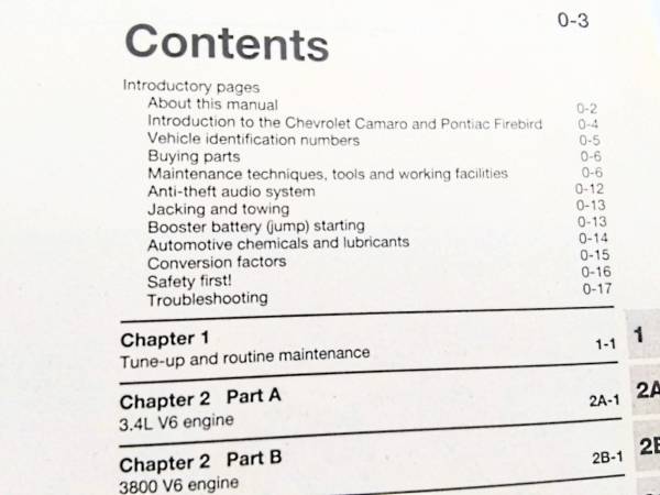 Models covered in this manual are All Chevrolet Camaro and Pontiac Firebird models 1993-2000. Paperback, nice condition, $7.00. Published by Haynes in 2000. Contents include: 3.4L V6 Engine. 3800 V6 Engine. 5.7L V8 Engine. Manual and Automatic Transmissions. Electrical systems and wiring diagrams. Color spark plug diagnosis chart. Troubleshooting. Engine repair, cooling and heating, Fuel and exhaust, Brakes and lots more in this manual. I'm in Gresham Oregon by Gresham Golf Course. Text or Email ok. Thank you for looking.