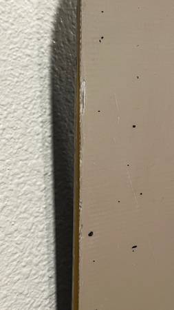 Some edge damage that is pictured, base is in good shape. Bindings are in good condition and have had no issues. Mounted for a size 28.5 (mondo) Nordica boot.