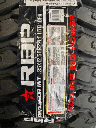 Selling a brand-new set of 4 Repulsor Mud Terrain tires Size: 35x12.50R22 Load Rating: 10-ply All four tires are new, never mounted $1,286 for the full set Located in Gresham Mounting available if...