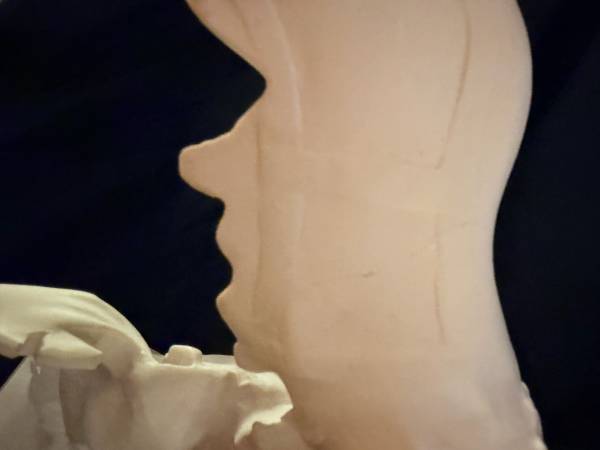 Solid, substantial piece with great detail in the wings and flowing drapery. Clean, no chips or cracks that I can see. Displays really well and feels much more solid than typical décor statues.
