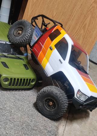 Axial scx6 1/6 scale crawler. Haven't used for 6 months, no time for rc trucks . Rear diff ring gear has a chipped tooth so it clicks. Easy repair... This started out a the jlu jeep and I converted it to the honcho last Christmas. Has upgrades but I'm sure I have forgotten everything. Will be ready to go with your radio and batteries. Has a radiolink receiver in it now. If you are interested I can answer more questions and give more details.