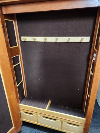 Measures 21.5 inches wide 31 inches tall 7 inches deep. Cash only Pick up bay city One hanger in back need repair. One of a kind