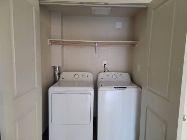 You will love your fully equipped kitchen with all new brushed satin nickel appliances, including a space-saving over-the-stove microwave, self-cleaning oven, refrigerator, dishwasher, and built in garbage disposal. You will have plenty of cabinet space with all-adjustable shelving that opens into the living room, great for entertaining.