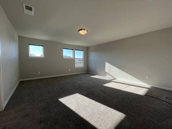 Also on this level are two additional well-sized bedrooms, each with carpeted flooring, bright windows, and sliding-door closets, as well as a full bathroom with a long single vanity and tub/shower combination. A laundry room on the second floor adds further practicality. A versatile loft space just outside the primary suite allows for an entertainment zone, office, playroom, or second living area.