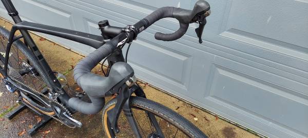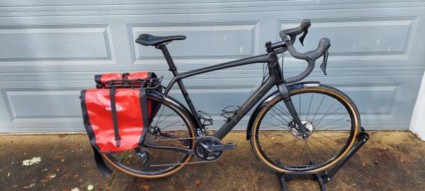 The bike has been used but is in great condition. It was fully serviced from front to back, including new brakes and bleeding, new cables, a new chain, etc. It is in perfect working condition. The photo shows its versatility. No fenders for gravel or custom fenders for rain, or all the above, plus a rack and panniers for commuting or adventure riding.