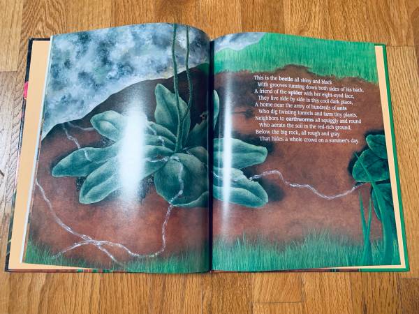 * This book uses a rhythmic, engaging story and vivid illustrations to explore the diverse insect community living beneath rocks, such as earthworms, ants, spiders, and slugs. The backmatter includes "Field Notes" and "Fantastic Facts" about the creatures mentioned in the