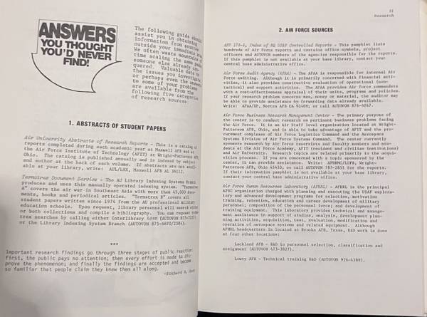 A binder with the curriculum of a US Army Air Force pilot, “Communicating To Manage In Tomorrow’s Air Force.” Publication from 1976.