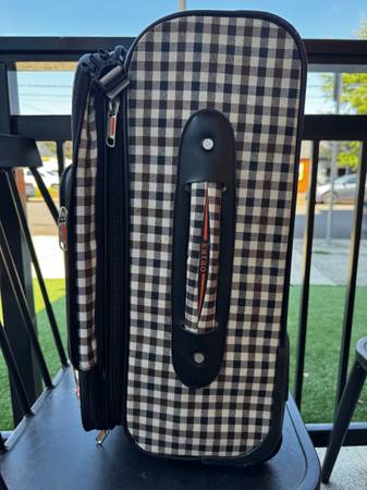 14.5” X9” X 20”.Pleasing look and easy to find at the airport!
