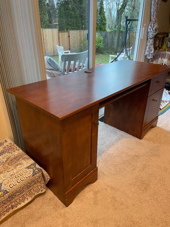 Desk for home office. Excellent condition. Quite heavy, Will need 2 people help to move it and pickup truck or van. Non smoking home. Available until listing gone. $50 obo