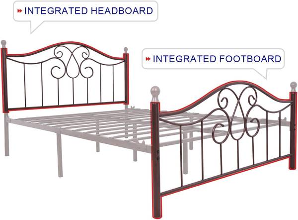 Brand new and in the box TUSEER Metal Bed Frame Queen Size with Vintage Headboard and Footboard Platform Base Wrought Iron Bed Frame (Queen, Antique Brown)
