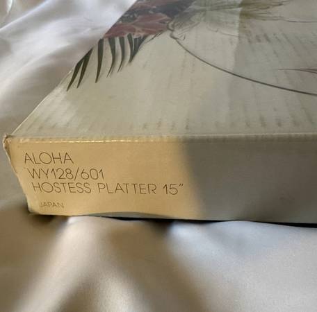 The Studio Nova Aloha Hostess Serving Platter is a clear glass platter made in Japan in the 1980s. It features a round shape and a floral pattern, and is decorated with a contemporary style. An...