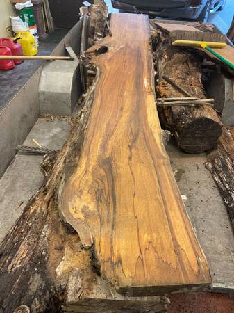 live edge spaulted maple slabs 2" thick by 24" wide by 12' long $3 a board foot. They have been stacked and stickered inside for over a year. I also have about a dozen that are 12-14" wide by 10' . There are about 10 30" roundish buryls for sale also. Great for furniture making. The beautiful grain is absolutly stunning.