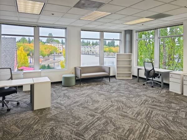 Ergonomic furniture, quiet zones, and a stunning lakeside park just steps away—take a break, recharge, and thrive