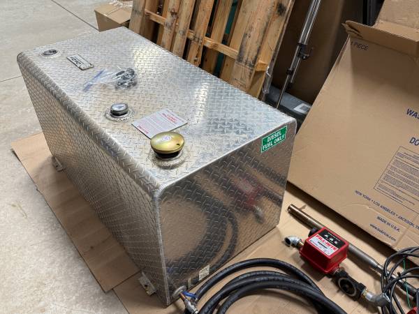 Dee Zee Tank 108 Gallon L48 x W24 x H24 3 Bungees Fuel Gauge Vent Bottom Drain Fill Rite 15 Gallon Pump Hose Nozzle Filter Flow Meter Only Pumped 100 Gallon All Like new