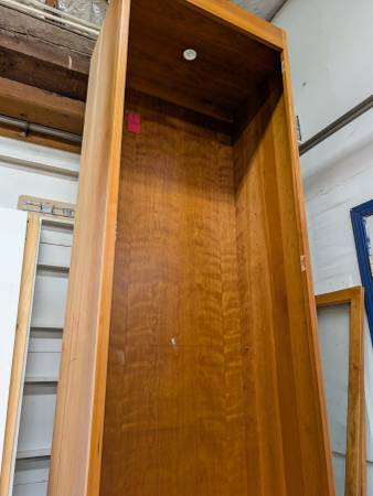 Really tall cabinet with glass doors and a wine rack. The glass doors cover just the top portion and are off currently but the hinges are included. Also included is a light the shines from the top. Measures 107 inches tall x 40 inches wide x 19 inches deep. Come on down to the McMinnville Habitat for Humanity ReStore and pick it up today for only $50! Please bring help to load